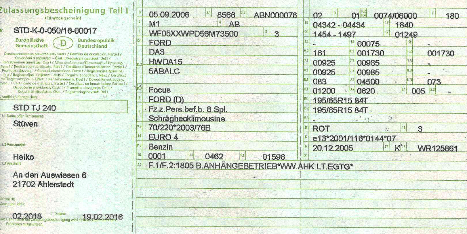 Fahrzeugschein